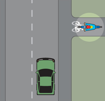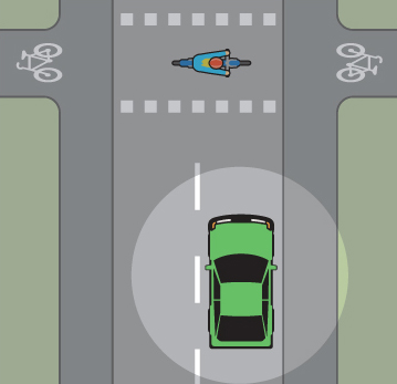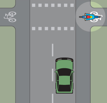 - När du närmar dig en obevakad cykelöverfart ska du anpassa hastigheten så att det inte uppstår fara för cyklister och mopedister (klass ll) som är ute på cykelöverfarten.